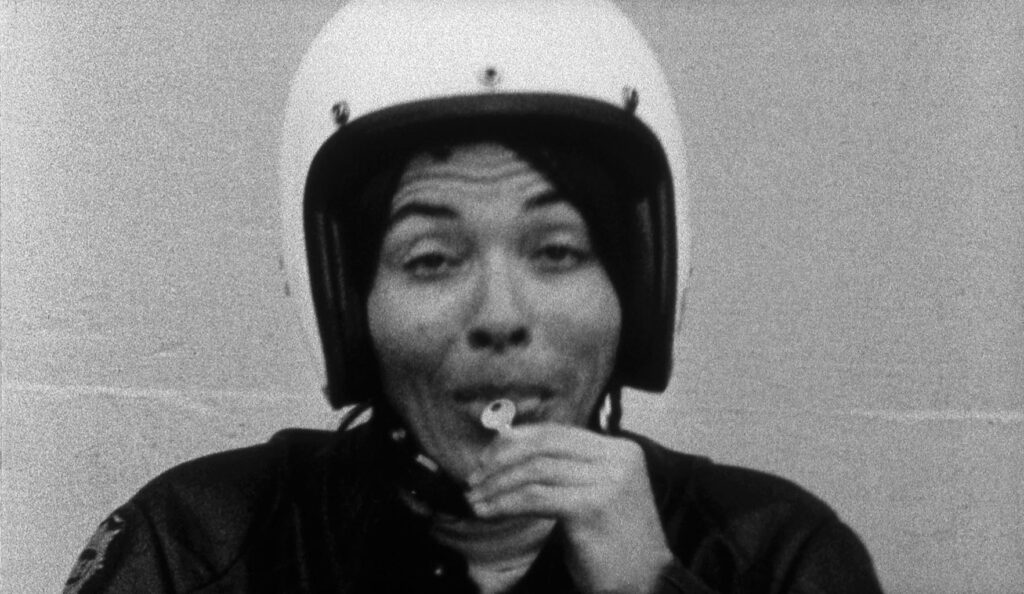 In the early 1970s Hammer studied film at San Francisco State University. After seeing Maya Deren’s film Meshes of the Afternoon, she was inspired to make experimental films about her personal life. After coming out as a lesbian she “took off on a motorcycle with a super-8 camera” and in 1974 filmed Dyketactics, widely considered to be one of the first lesbian films.