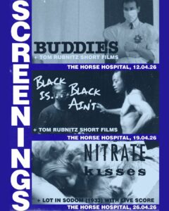 Barbara Hammer’s first feature documentary Nitrate Kisses (1992) will be featured in the third installment of Sunday Screenings, an afternoon of queer underground cinema at The Horse Hospital in London, UK on April 26th at 1pm!